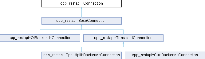 Implemented in cpp_restapi::BaseConnection, cpp_restapi::QtBackend::Connection, and cpp_restapi::ThreadedConnection.